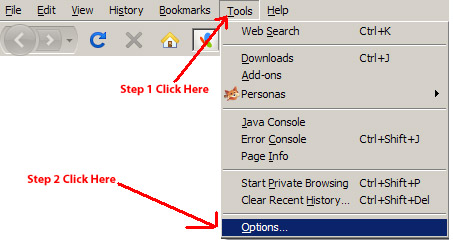 Firefox Options in Tools Menu