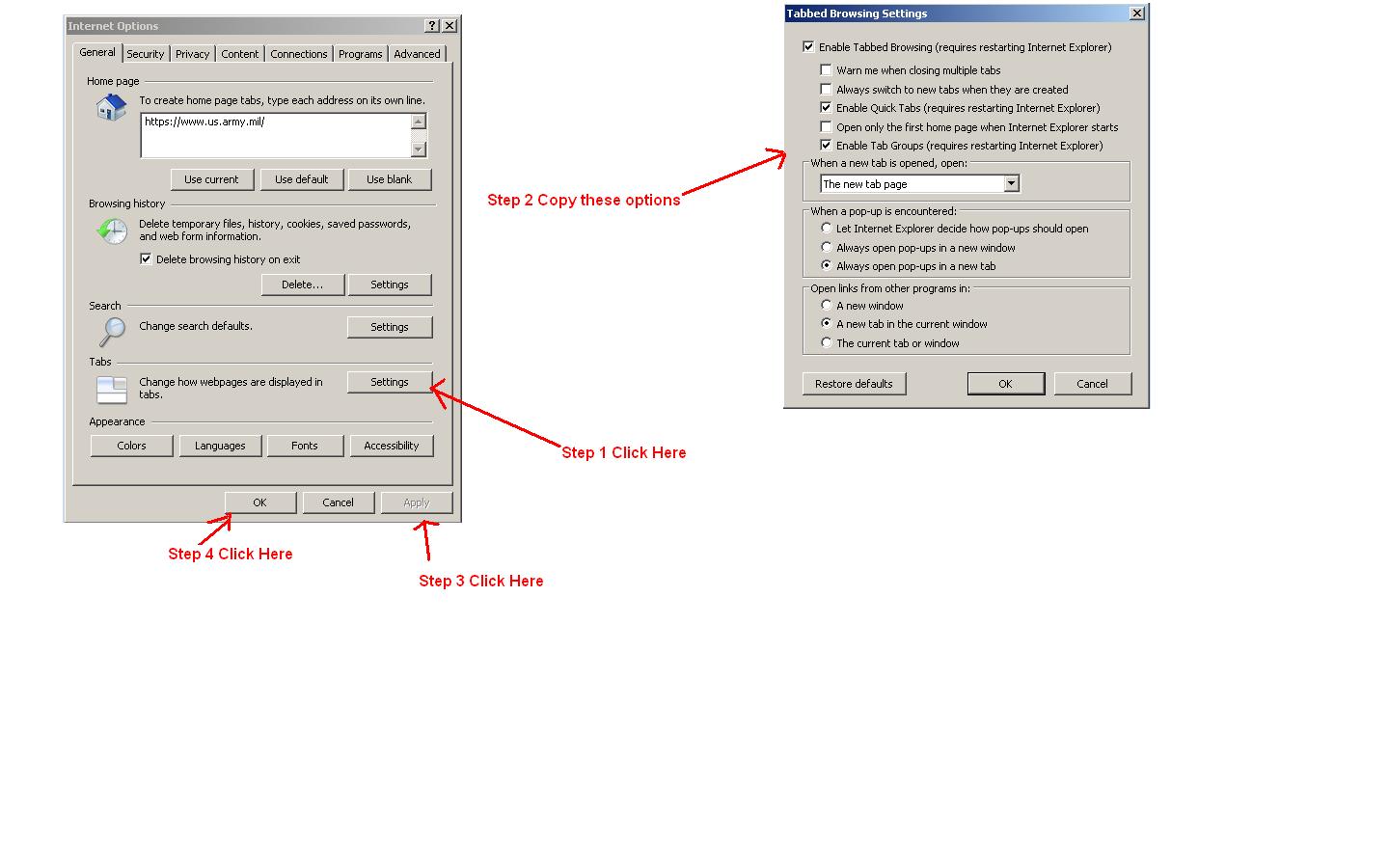 Internet Explorer Modify Tabbed Browsing Open All Links in a Tab
