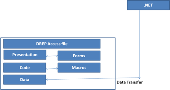 The modified process model for the proposed system can be found in Appendix B, Figure 2. The proposed system will maintain the same look and feel of DREP. Inside the bold box is the representation of the current system which will be migrated into SQL Server. The presentation layer and code layer that contain the forms and macros will be coded in .NET, and used on the front end of the programs. The data layer will be transferred from Access to SQL Server acting on the back end. All business rules and constraints will remain.